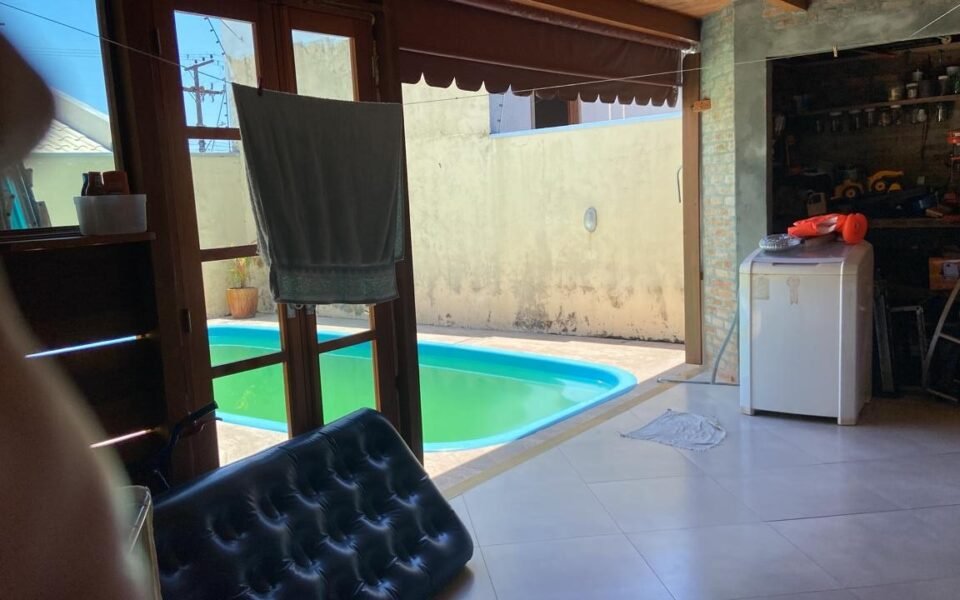 • 2 Banheiros ( um amplo dentro da residência) e outro na área próximo a piscina