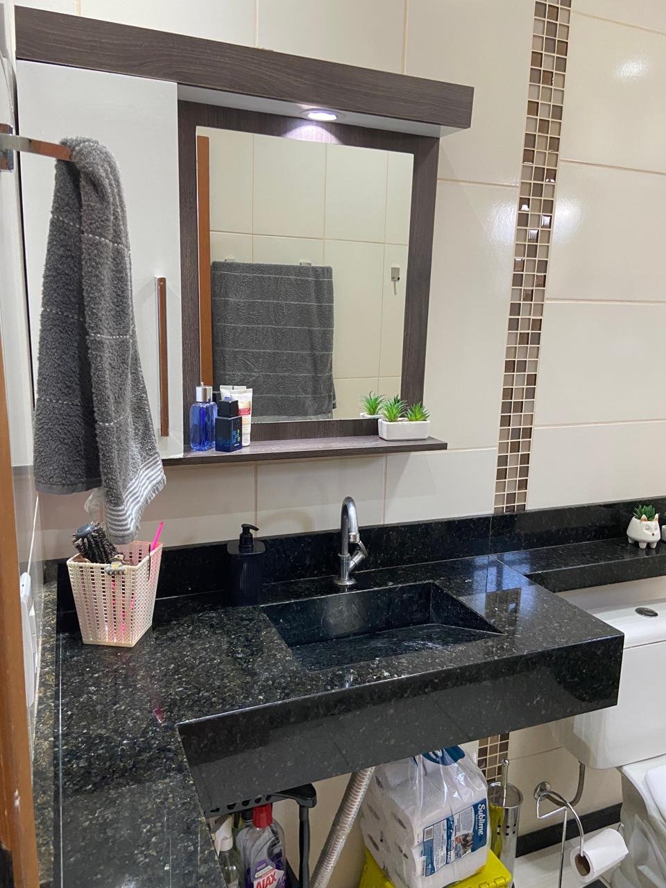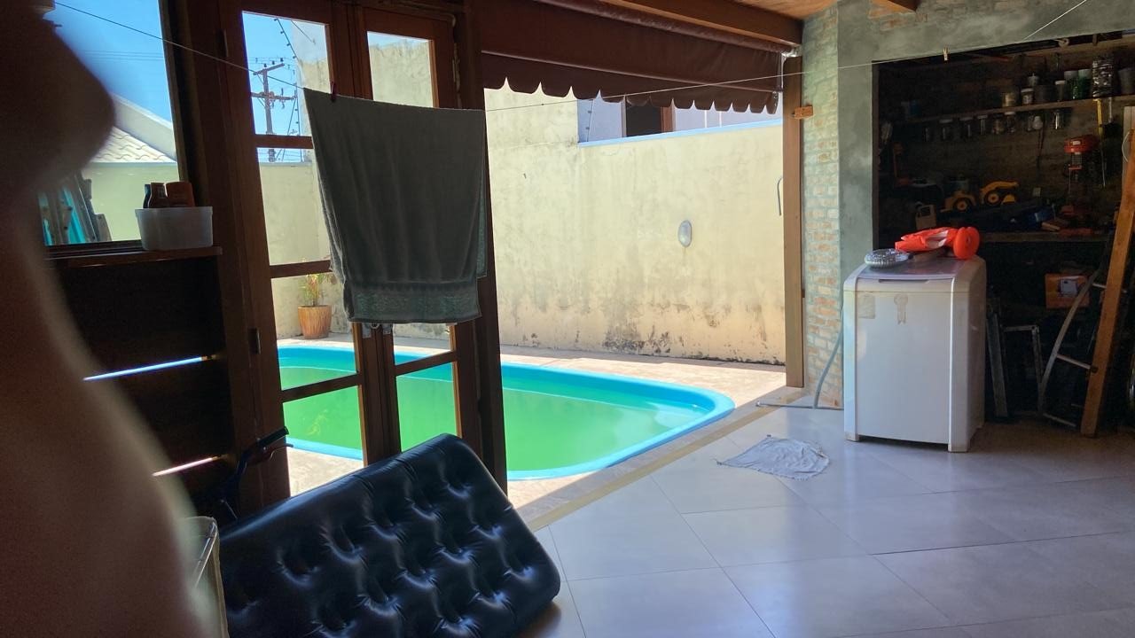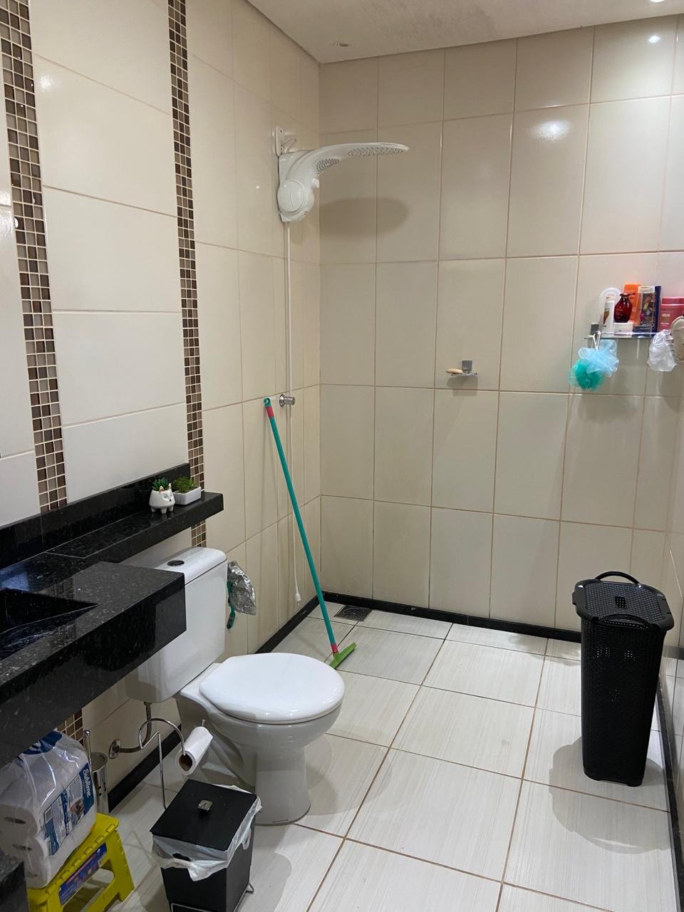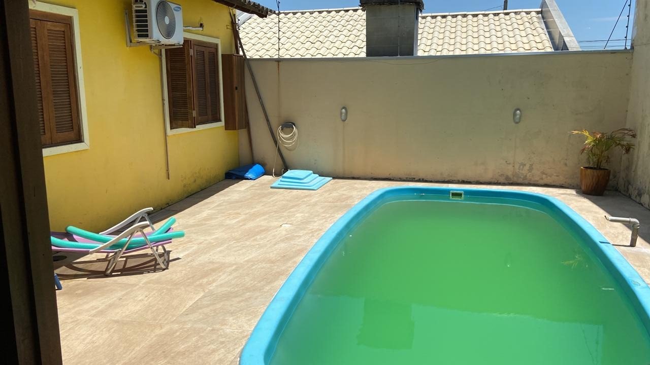 • 2 Banheiros ( um amplo dentro da residência) e outro na área próximo a piscina